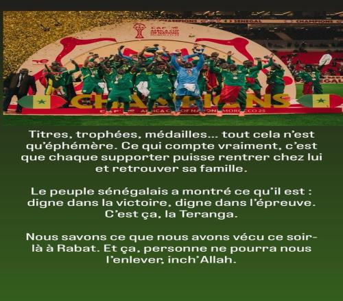 在塞内加尔在非洲杯决赛被判0-3后,塞内加尔队长盖伊在社交媒体回应了此事。